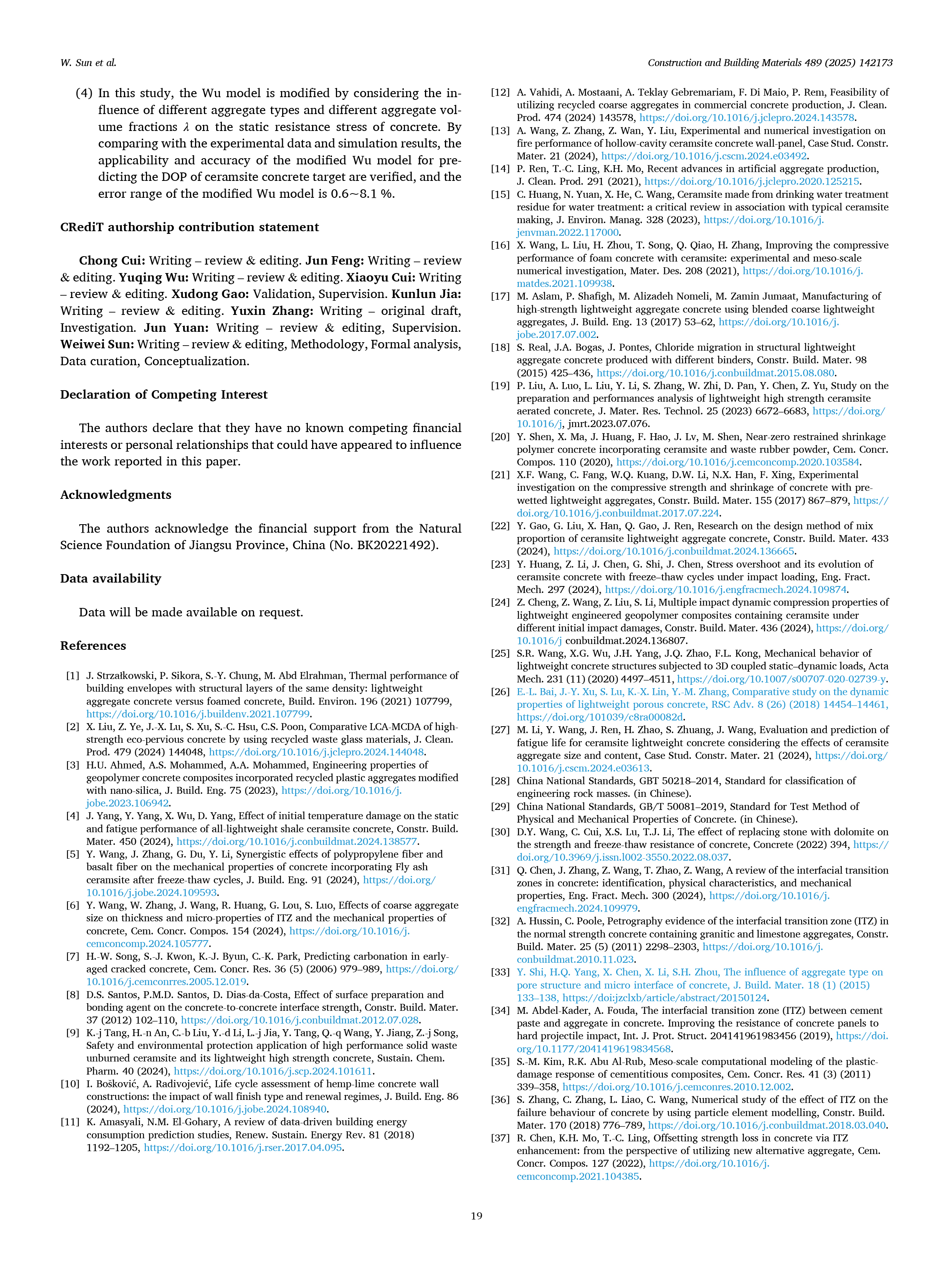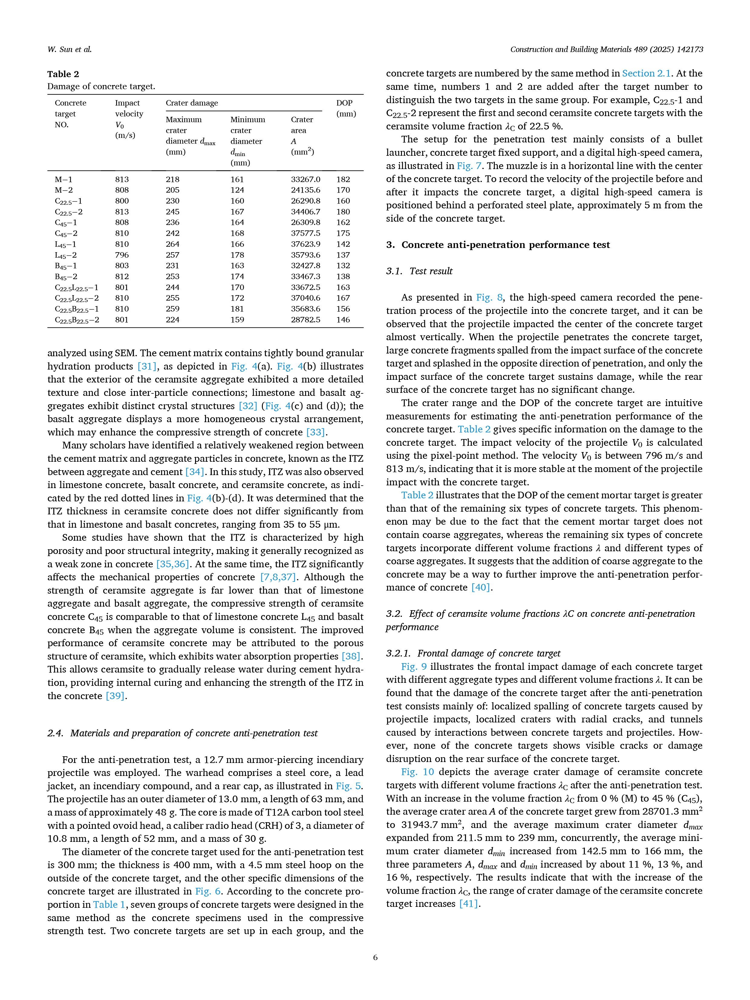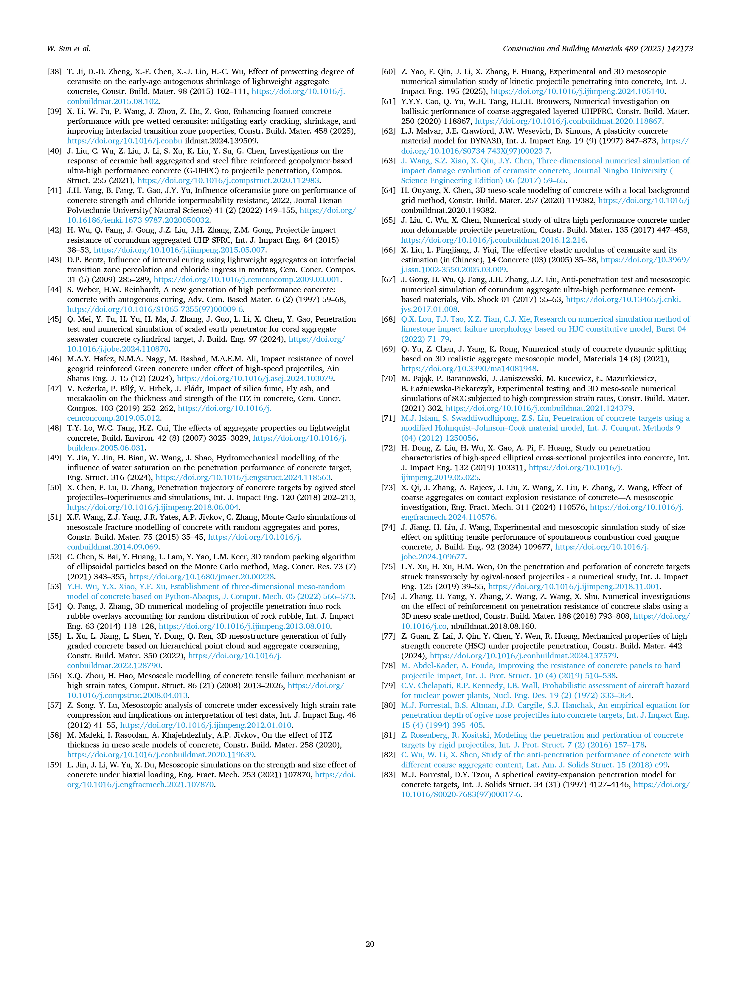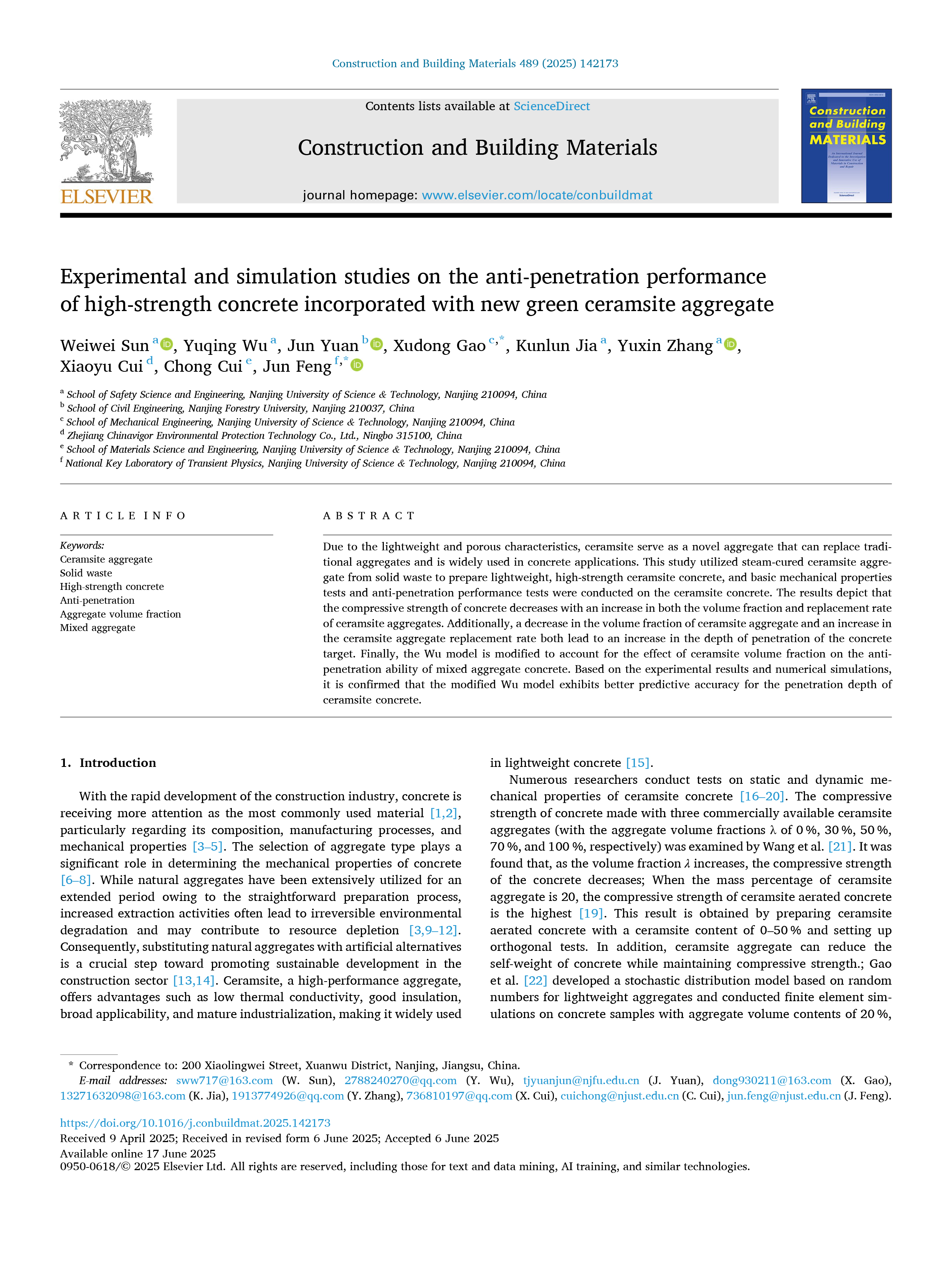 《新型绿色陶粒骨料掺入高强混凝土抗侵彻性能的试验与仿真研究 Construction and Building Materials》