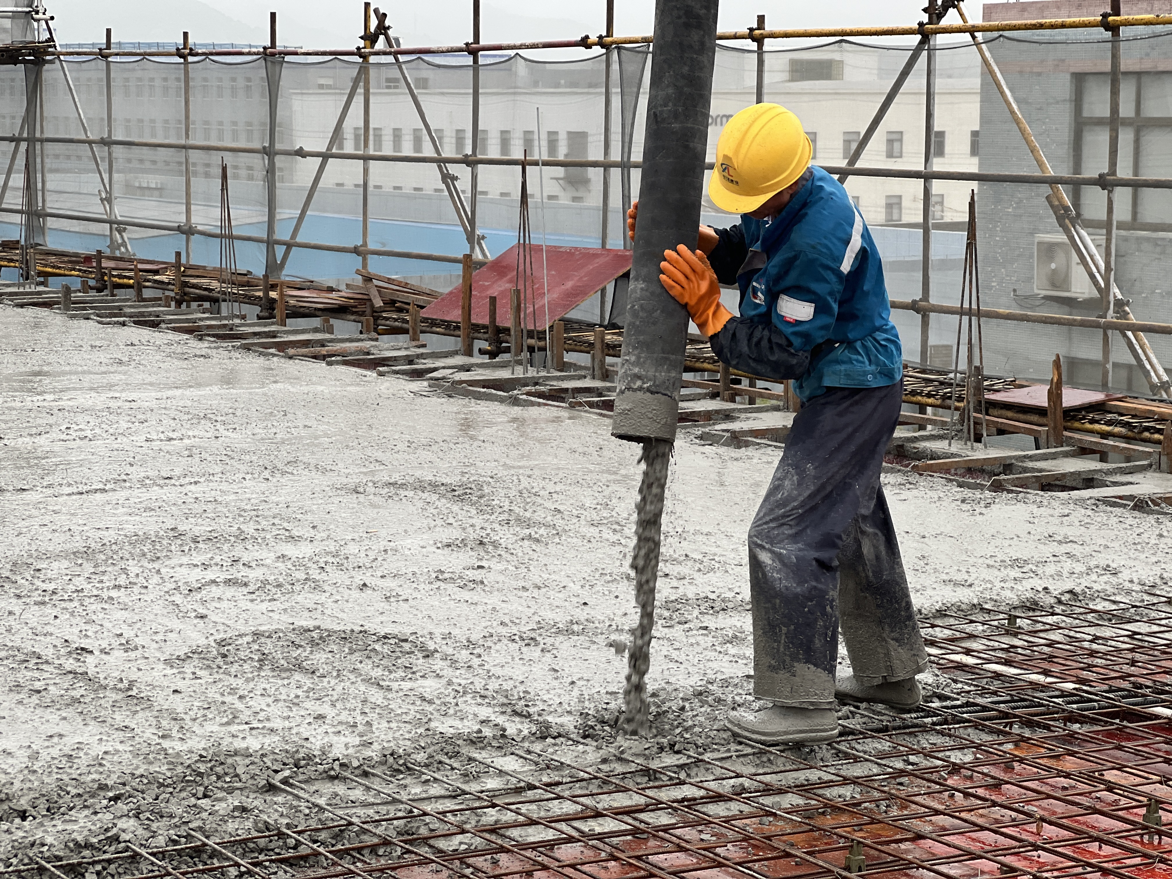 混凝土被泵送到楼顶
