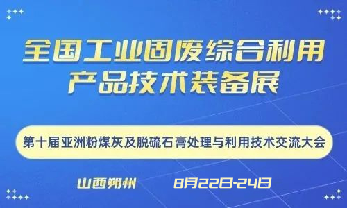 第十届亚洲粉煤灰及脱硫石膏处理与利用技术交流大会于8月22日-8月24日在山西朔州召开!全国工业固废综合利用产品技术装备展也将强势回归,浙江中劲环保科技有限公司获邀亮相本次展会,欢迎新老朋友前来交流!