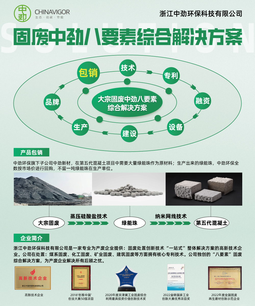 浙江中劲环保科技有限公司,是一家专业从事环保新材料产品的研发、生产、销售以及生产装备成套设计、输出、安装、运维的高新技术企业。通过技术创新,成为世界上采用水热合成创新技术制造固废基硅酸盐功能粒料/骨料的企业,并成功实现产业化,形成了具有独立知识产权的低碳造粒技术与应用技术体系。