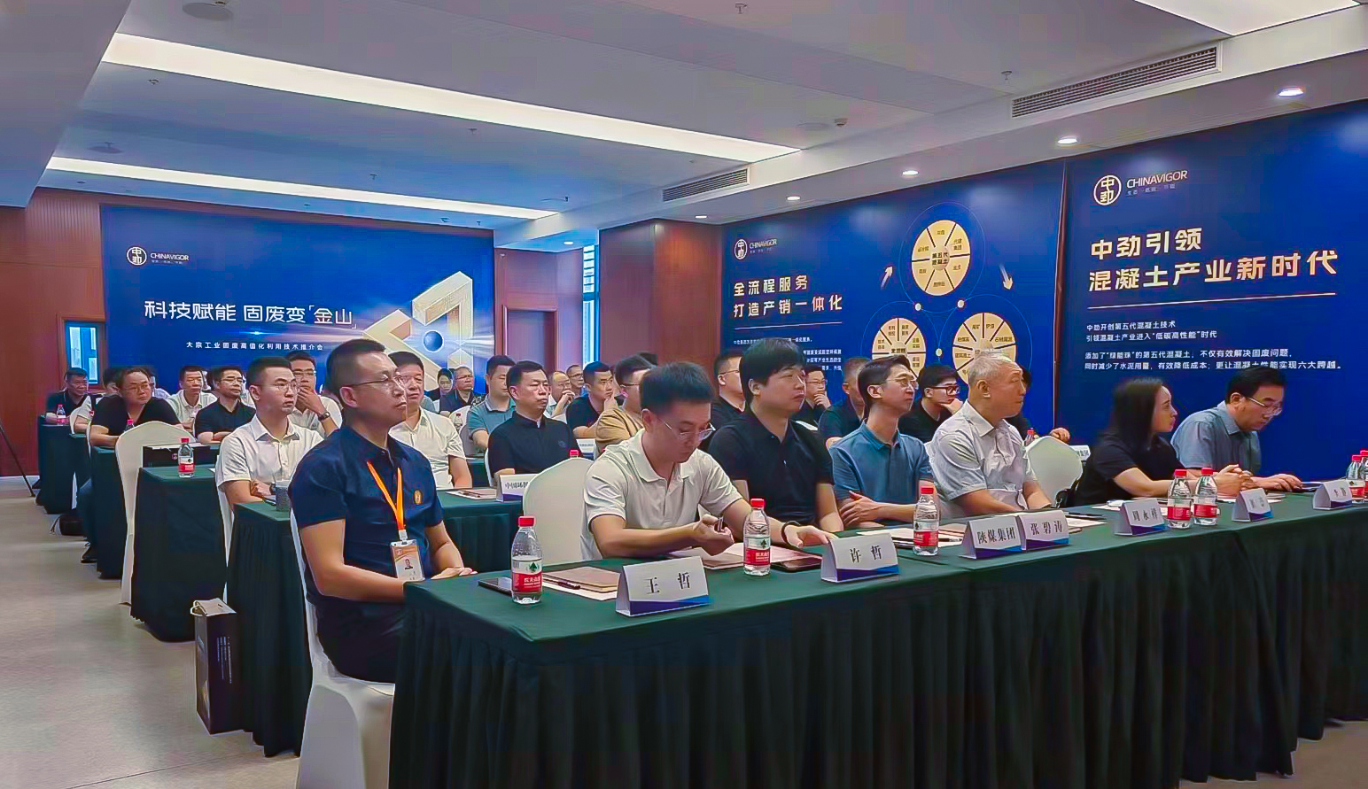 本次会议首先由中劲环保领导介绍项目背景。他表示在国家“双碳”政策引导下,我国几十亿吨级的大宗固废利用急需寻找附加值高、消纳量大的应用市场,万亿级混凝土行业成为大宗固废利用的优选方向。中劲环保公司在国家863科研成果基础上,通过技术升级,成功研发出以多种固废为主要原料的新型绿色建材——蒸压硅酸盐功能骨料(绿能珠)。加入绿能珠的第五代混凝土,具有施工性能好、抗裂自养护、节约水泥、绿色低碳等优势。该产品的应用,能增加建筑寿命30年,降低20%的碳排放,减少预拌混凝土综合成本5%以上。