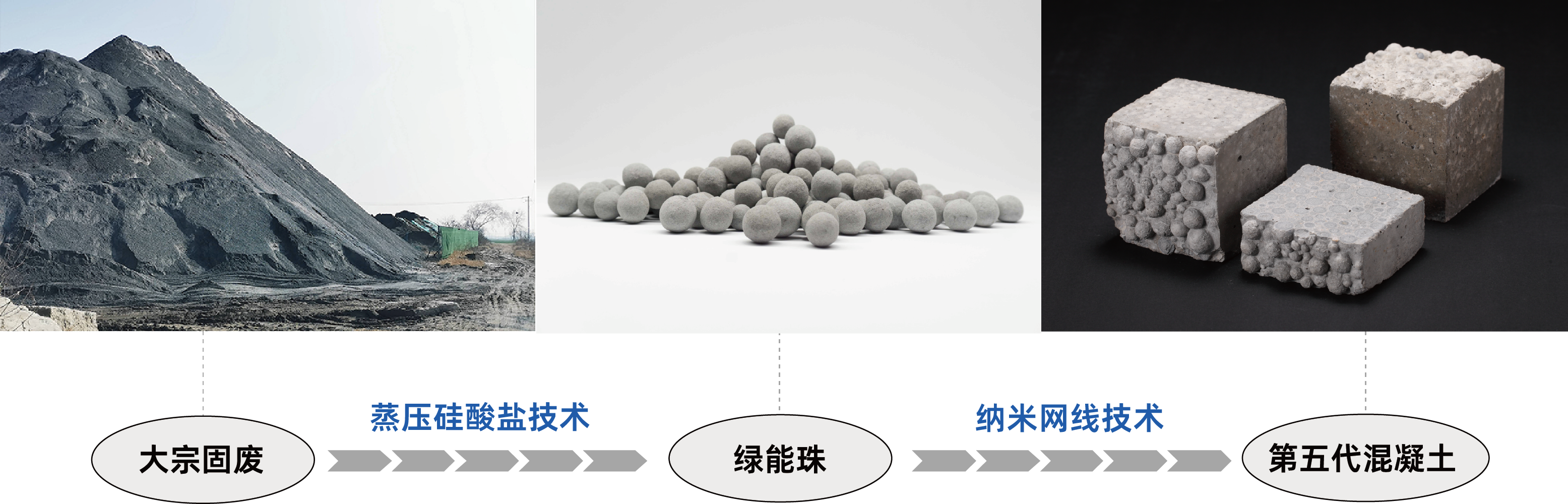 中劲公司发明专利“蒸压硅酸盐功能骨料技术”,是利用大宗固废通过工厂化生产制造成新型功能骨料(绿能珠),可以彻底解决企业固废处置的后顾之忧。功能骨料生产原材料十分广泛,硅质原料来自于粉煤灰、炉渣、尾矿、石材锯泥等SiO2含量较高的固废,钙质原料则可以采用水泥、熟料、石灰、钢渣、电石渣、碱渣、白泥渣等。