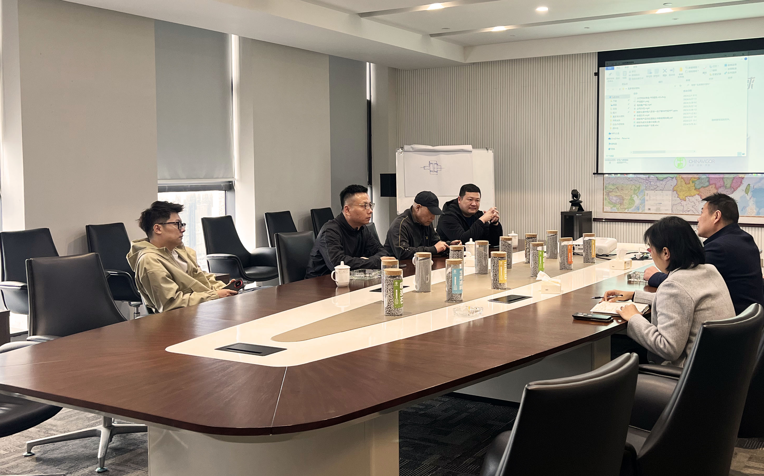 3月28日,陕西泾港沣环保建材有限公司总经理谢梦博,总工程师蒋世祥一行风尘仆仆赶到中劲宁波总部。中劲公司董事长李天君陪同交流。
