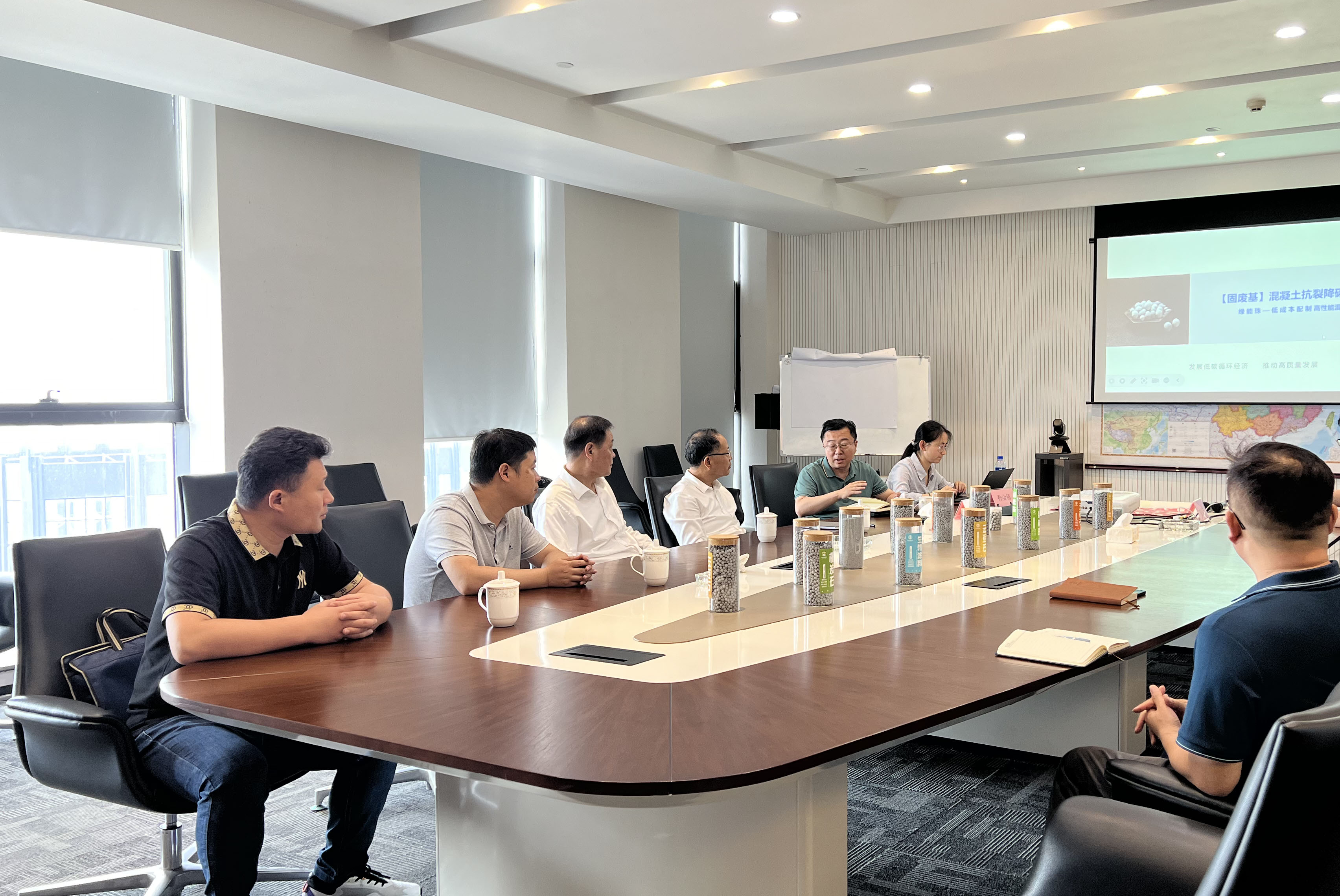 中劲环保领导首先详尽的介绍了中劲公司固废基抗裂降碳新材料绿能珠的项目建设、技术工艺、产品应用、市场前景、商业运营方案及公司未来发展战略布局情况。各位考察团领导全神贯注的听取,并不时拍下重点感兴趣的内容。