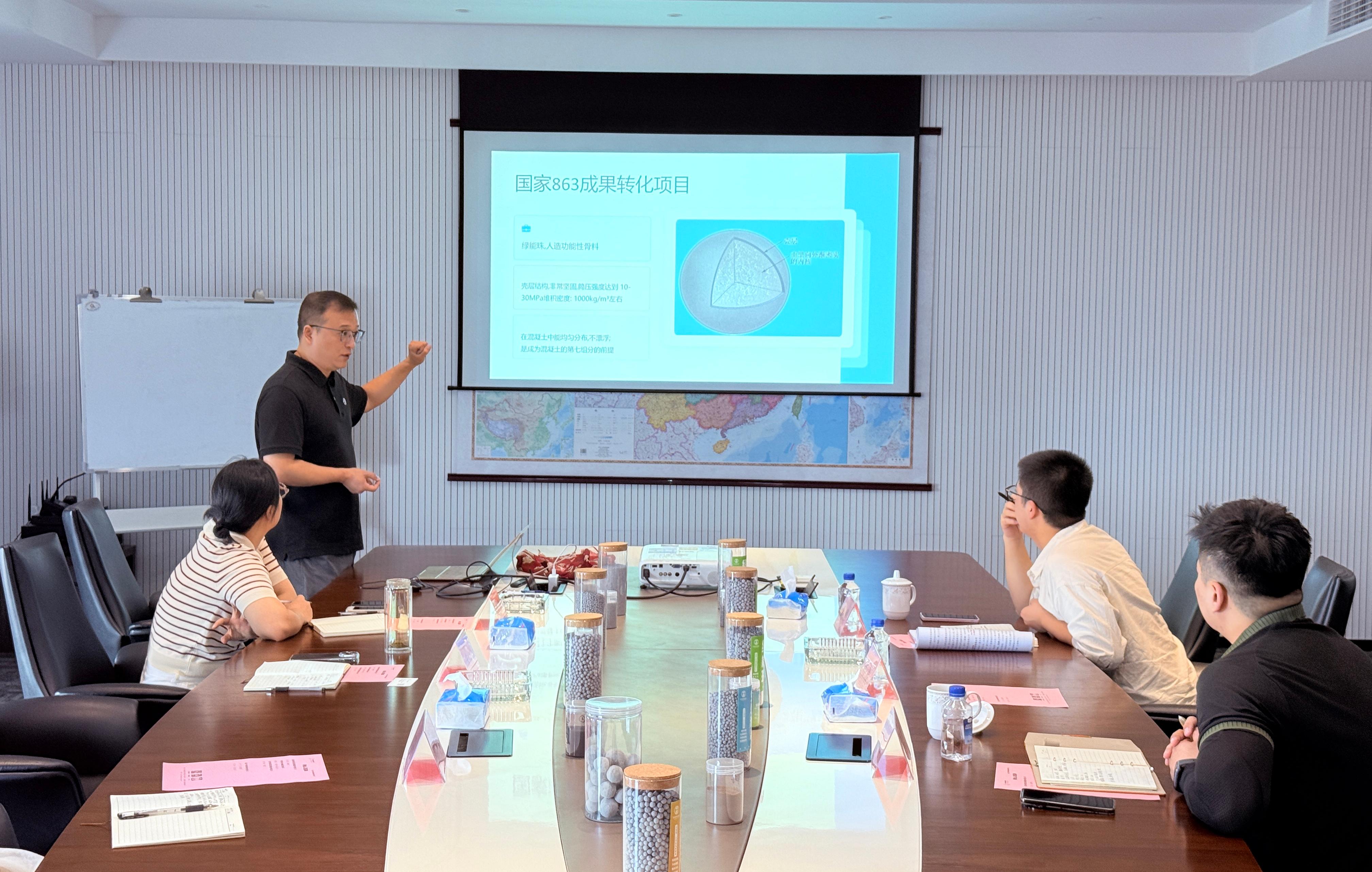 朱彤副总则重点介绍了中劲公司核心创新技术——《绿能珠混凝土抗裂降碳新材料》,系统阐述了该技术在提升混凝土抗裂性能、降低碳排放、降低成本等方面的优势及成效。考察组围绕技术的原料来源、生产成本控制、产品市场应用场景、产线建设投资规模及多种合作模式等内容进行了务实探讨。赵志远副主任诚挚邀请中劲公司赴当地进行实地考察,共同推动粉煤灰固废资源化利用项目早日落地克拉玛依,赋能当地循环经济与绿色低碳发展。