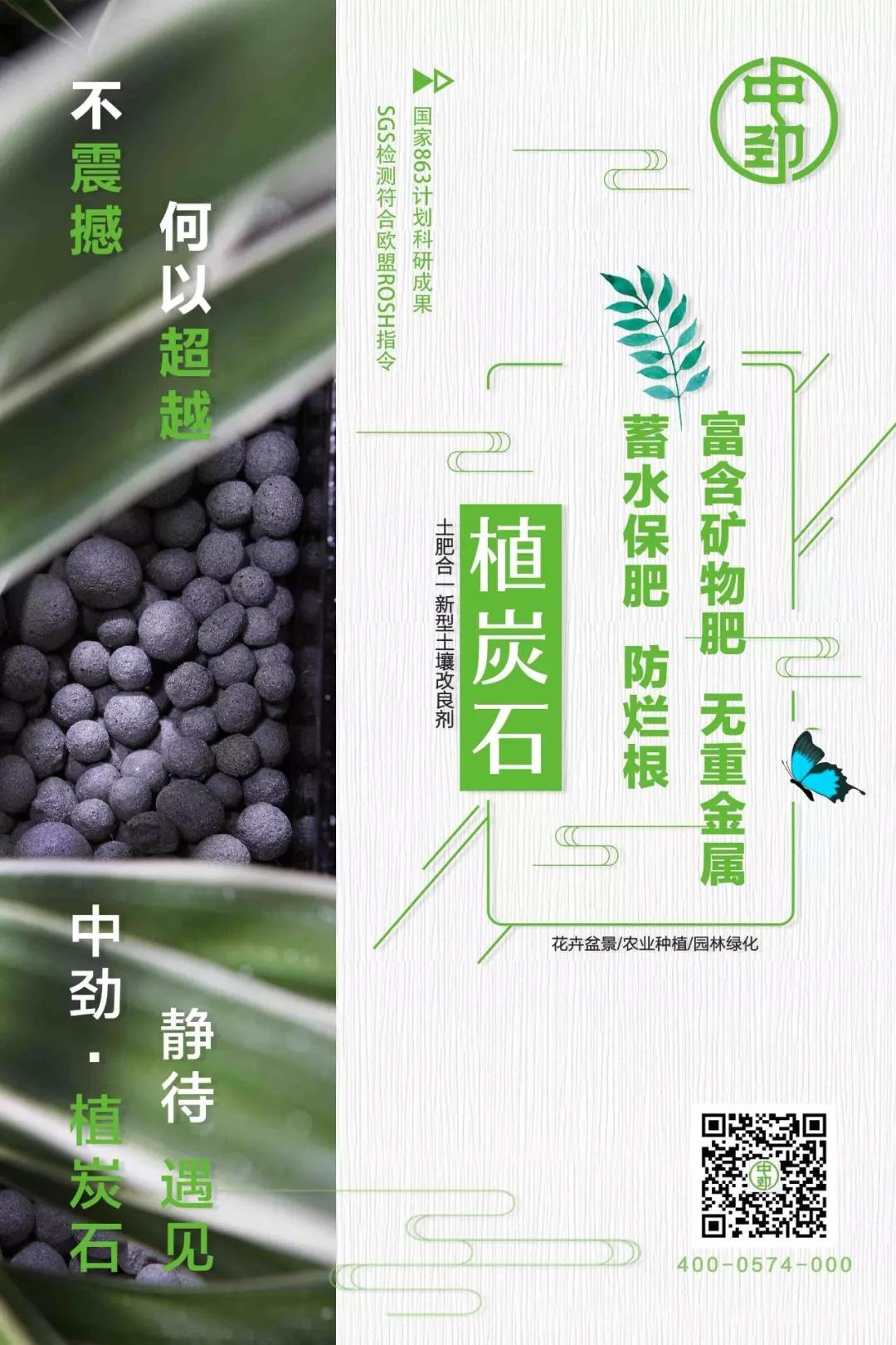 借此苗木展会,中劲更好地向外界展示了公司形象及公司产品—植炭石。作为土肥合一的新型土壤改良剂,植炭石能够有效改善土壤质地和活性。具有高水膨胀性反复吸水—释放的功能,起到施肥保肥、保水调水之功效,对调节土壤水分和植物生长具有重要作用。同时利于有益菌种持续生长繁殖,有效保持苗木的根系活力,提高造林成活率,这将对推动我国苗木花卉产业发展发挥重要的作用。