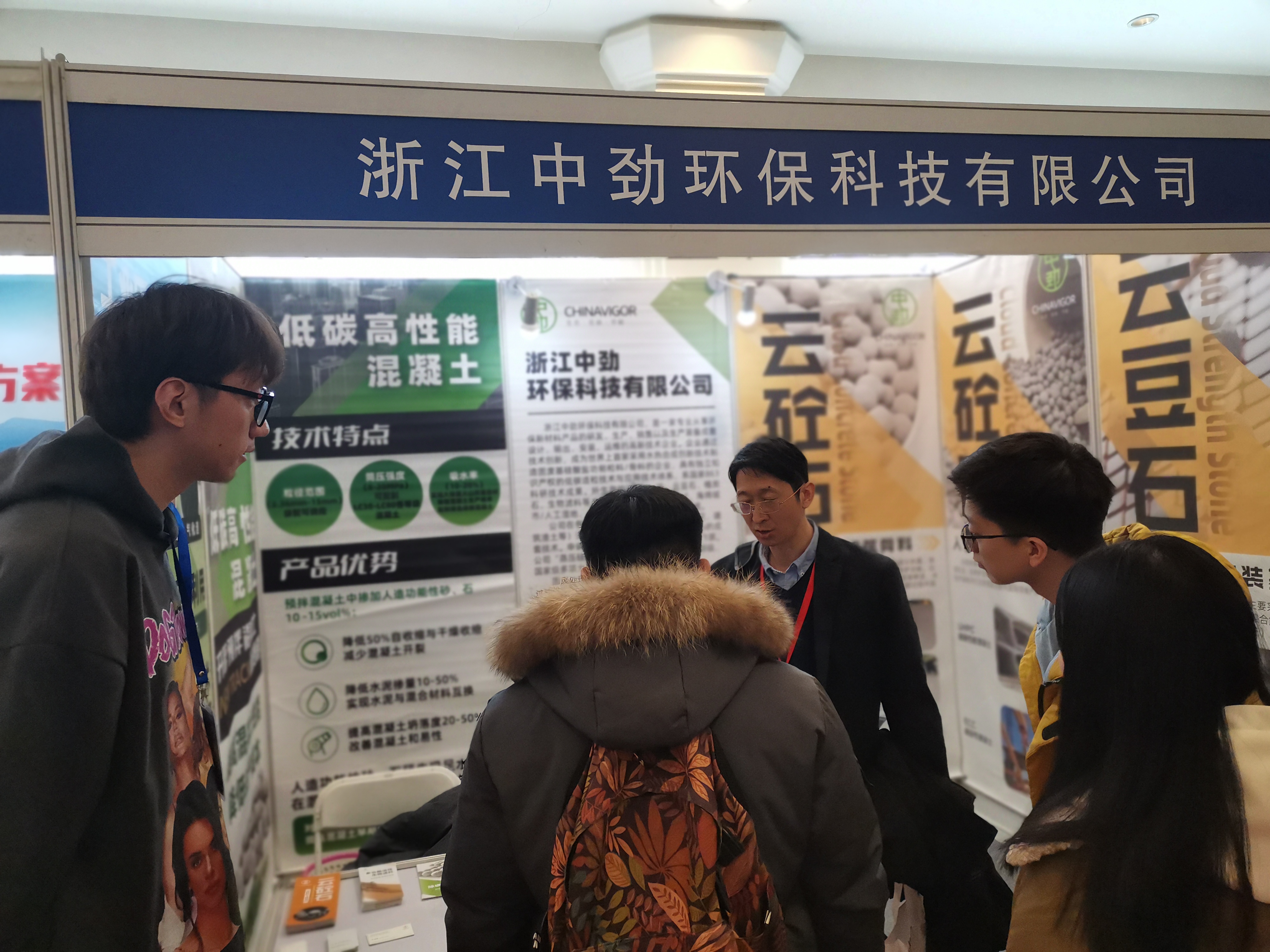 大家对中劲的创新产品“蒸压硅酸盐功能骨料”及专利生产技术兴趣浓厚,中劲同事为每位咨询的观展朋友进行了耐心细致的介绍。