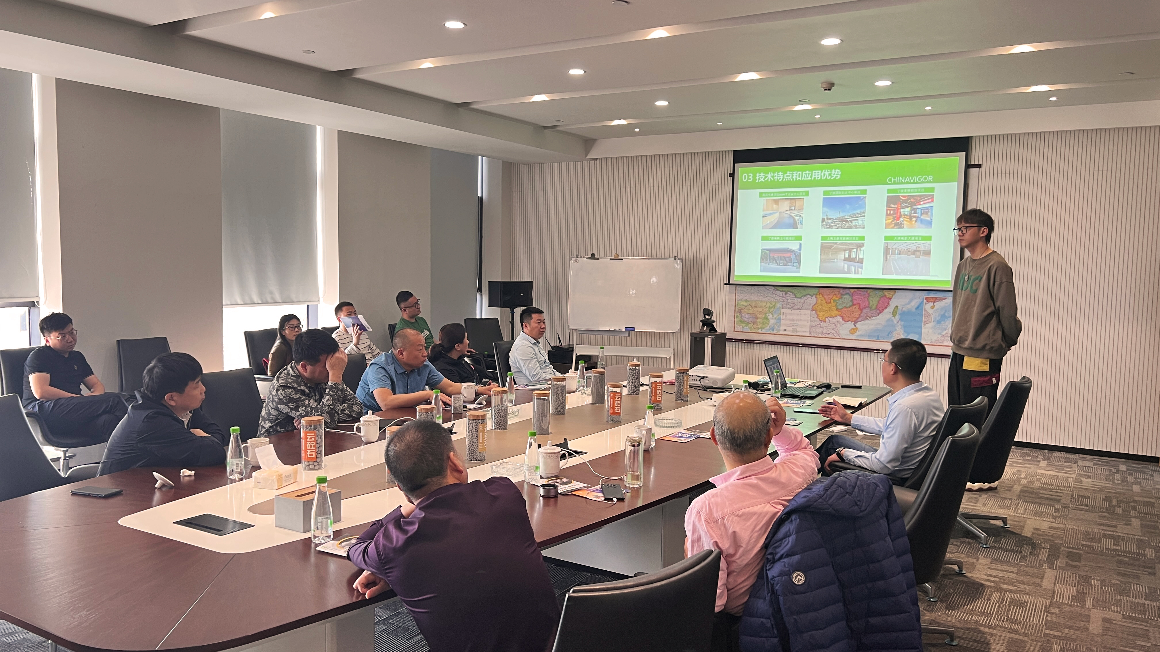 2023年3月10日,内蒙古住房和城乡建设绿色研究发展中心主任张少峰、内蒙古绿色建材行业协会会长姜岩、行业协会书记温文利、协会秘书长李为革、浙江省新墙材协会会长吴宗刚、舟山市新墙材协会会长王全省等领导一行莅临中劲公司考察交流。